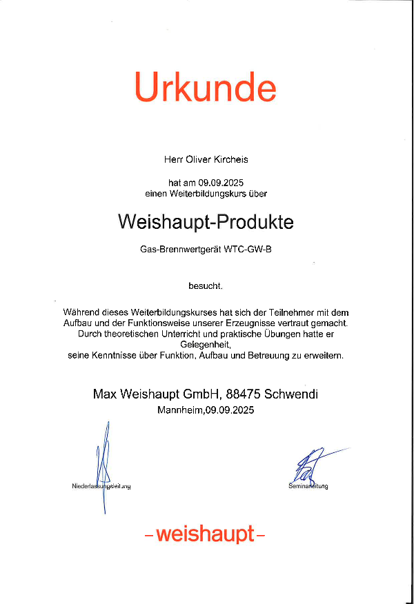 Weiterbildungskurs über Weishaupt Gas-Brennwertgeräte WTC-GW-B