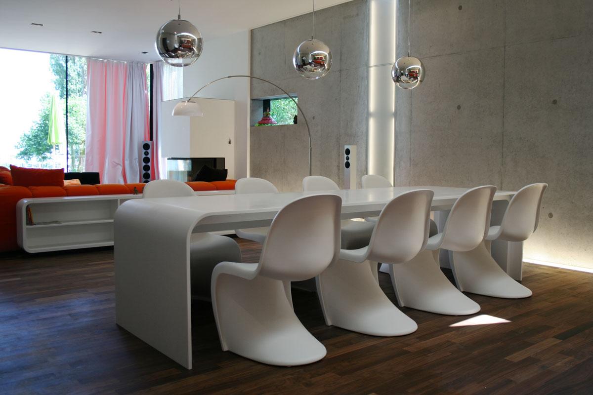 Doch die neuen Besitzer dieses Hauses wünschten sich eine farbenfrohe Wohnwelt im Stil der 70er Jahre. Für uns die Chance ein umfangreiches, spannendes Projekt umzusetzen.
